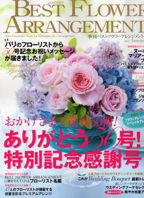 | 創刊50号を記念したスペシャル版。 タエコマーヴェリーフラワーズインジャパンが提案するウェディングフラワーコーナーに掲載されました | |||
