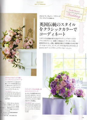 ![]() | ◎英国伝統のスタイルをクラシックカラーでコーディネート ヨーロッパの初夏を思わせるラベンダー&ラスティーピンクでコーディネートしました。 ジャスミンで爽やかなブリーズを演出しました。 花材:トルコギキョウ(エグゼラベンダー)、カーネーション(ライラックブルー) バラ(ショーゴエレガンス、グランス、キアノ) ジャスミン、ビバーナム、クレマチス他 マーヴェリー校長と、本部講師の倉田と共に掲載されました。 校長来日イヴェントの合間に撮影があり、ご一緒できて嬉しいです。 グッドタイミグなひと時でした。 |