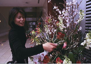 留学中はヨーロッパで活躍するフラワーデザイナーであり、校長であるMrs.タエコマーヴェリーから