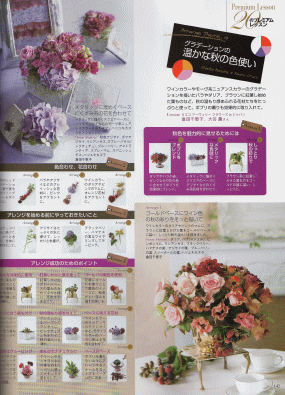 ☆ 大特集 秋のスペシャル! ☆ 「アレンジ上手になる 20のプレミアムレッスン」 アレンジメントを掲載中 P142ページに倉田先生と共に掲載されています。 コーナー最後にもポイントを絞った作品の作り方をのせていますので ご覧ください。 巻末にはスクールガイドも掲載しています。 |
